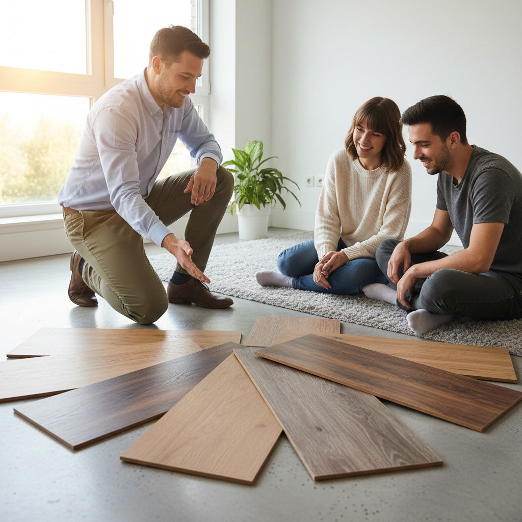 Ons adviesgesprek bij ons in de showroom is de enige afspraak die u nodig heeft. We brengen niet alleen stalen mee, we worden uw persoonlijke vloerpartner.