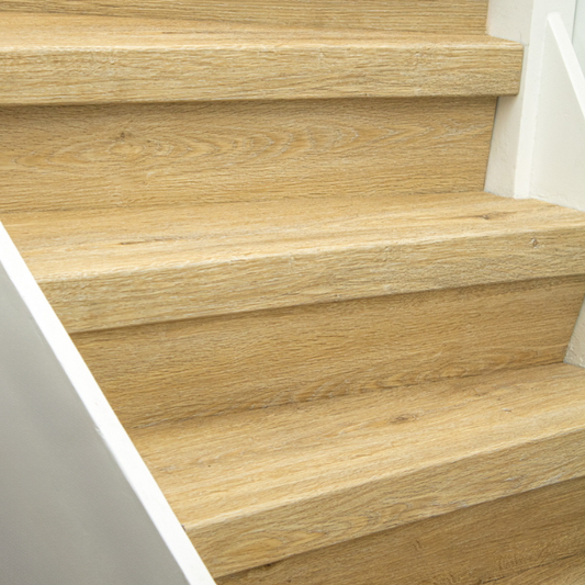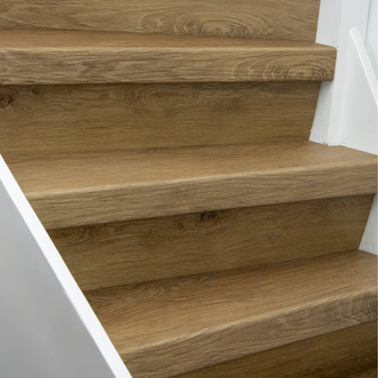 De Rijn PVC-traprenovatie heeft een warme kleur die een rustige uitstraling geeft. De traptreden zijn...